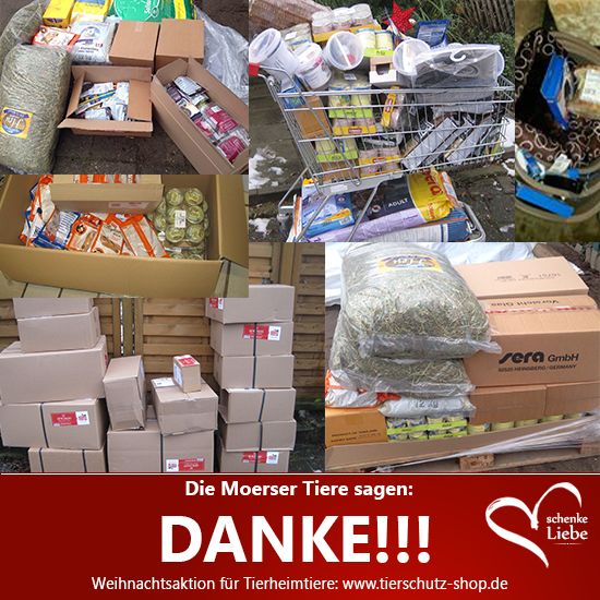 Wir freuen uns sehr, dass gerade in der Adventszeit viele Menschen aus Moers und Umgebung ihr Herz für Tiere gezeigt haben. Unsere Futterlager sind voll und die Spielzeugschränke quellen über.