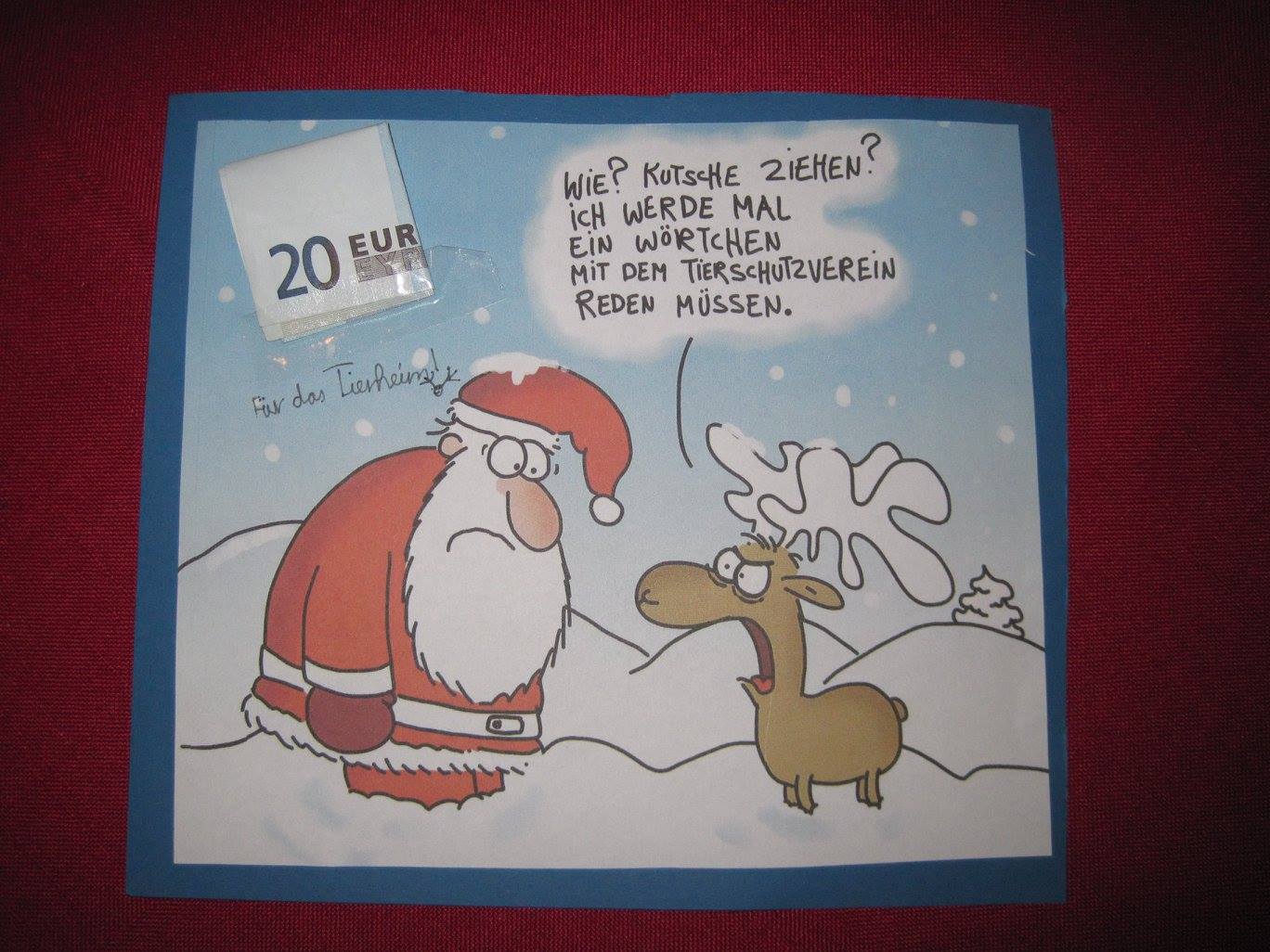 …aber auch viele kleinere und einige größere Spenden erreichten uns. Hier staunte der Nikolaus nicht schlecht, als er überraschend 20 Euro von einem “zufriedenen Kunden” in Empfang nehmen durfte.