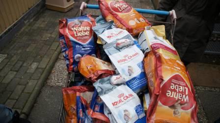 Am 6.12. brachte uns ein Moerser Geschäftsmann einen komplett beladenen Pkw voll mit hochwertigem Tierfutter aus einer Geschäftsauflösung.