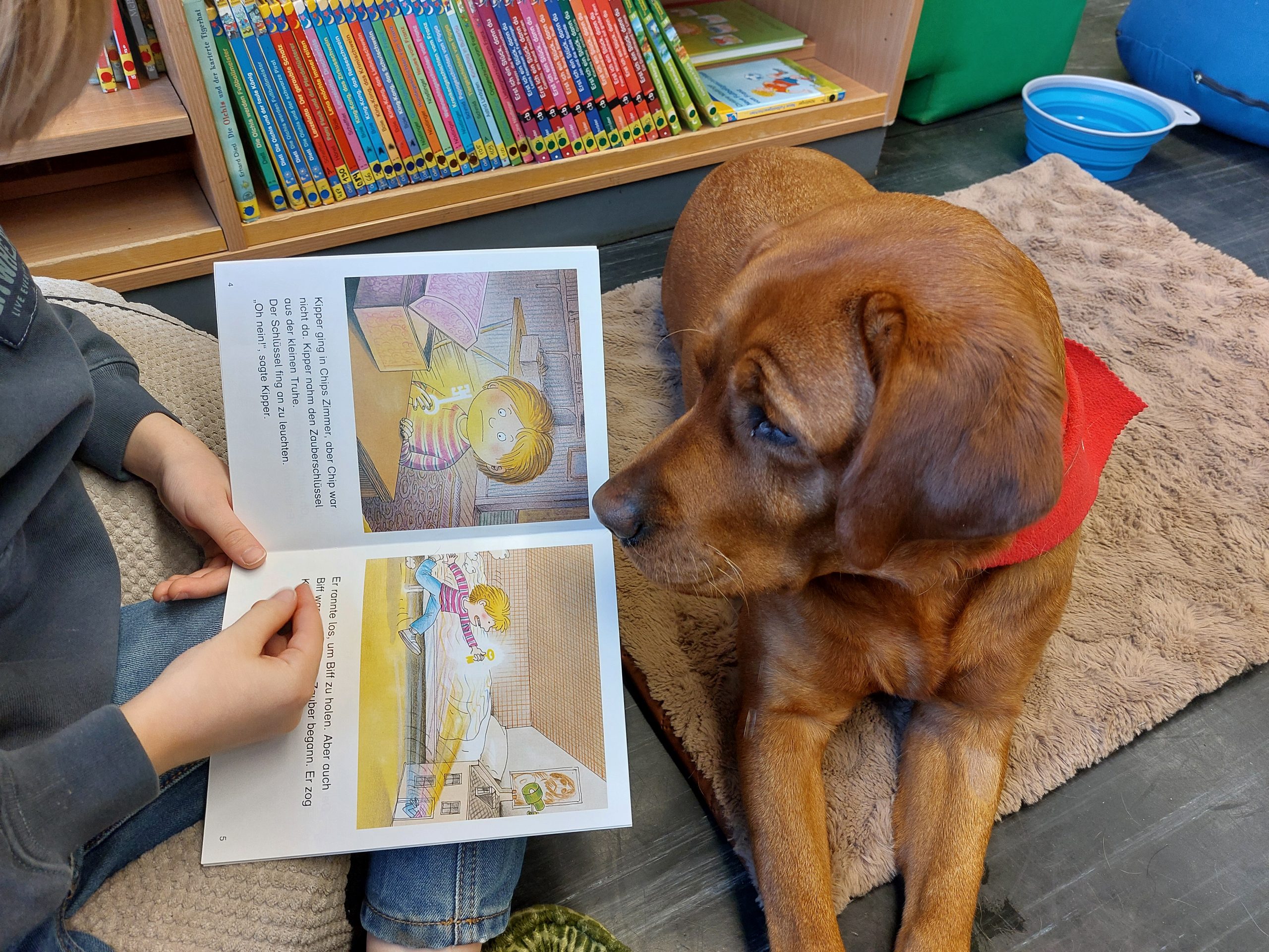 Ihren Job als Johanniter-Lesehund macht Belle ebenfalls toll und hört den Kindern geduldig beim Lesen zu, lässt sich dabei genüsslich kraulen und freut sich anschließend über eine kleine Leckerlisuche quer durch die Schulbibliothek.