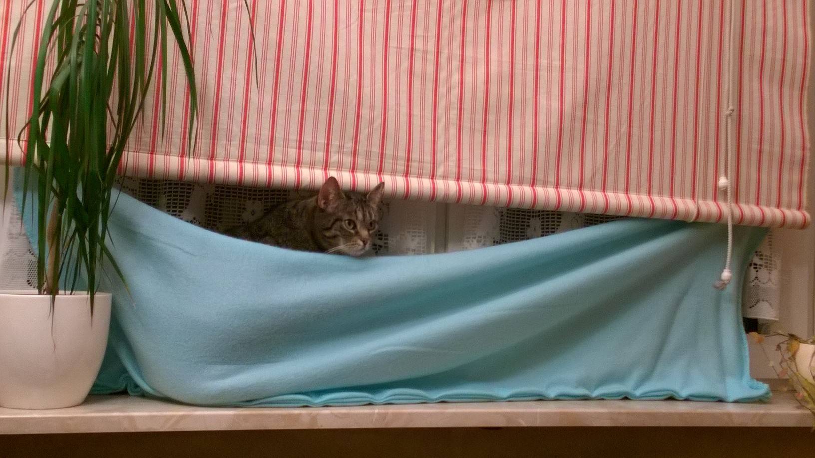 Heute morgen hat sie sich dann schlafen gelegt und ist erst zu einem frühen Abendsnack wieder aufgetaucht. Jetzt probiert sie verschiedene Nickerchen-Plätze aus.