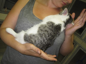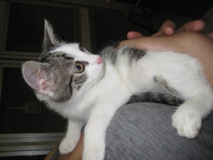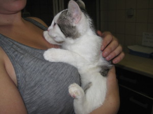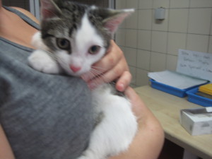 Lavinia, wie wir diese kleine, süße Maus genannt haben, wird so ca. 12 Wochen alt sein. Sie ist noch etwas verschreckt, fängt auf dem Arm aber sofort an zu schnurren. Ihr fehlt die Zuwendung und auch ein Spielpartner. Falls sich in den nächsten Tagen, keiner meldet, dem Lavinia gehört, wird sie daher auch nur zu einer etwa gleichaltrigen Katze vermittelt. Denn, was ist schöner, als gemeinsam die große Welt zu erkunden.