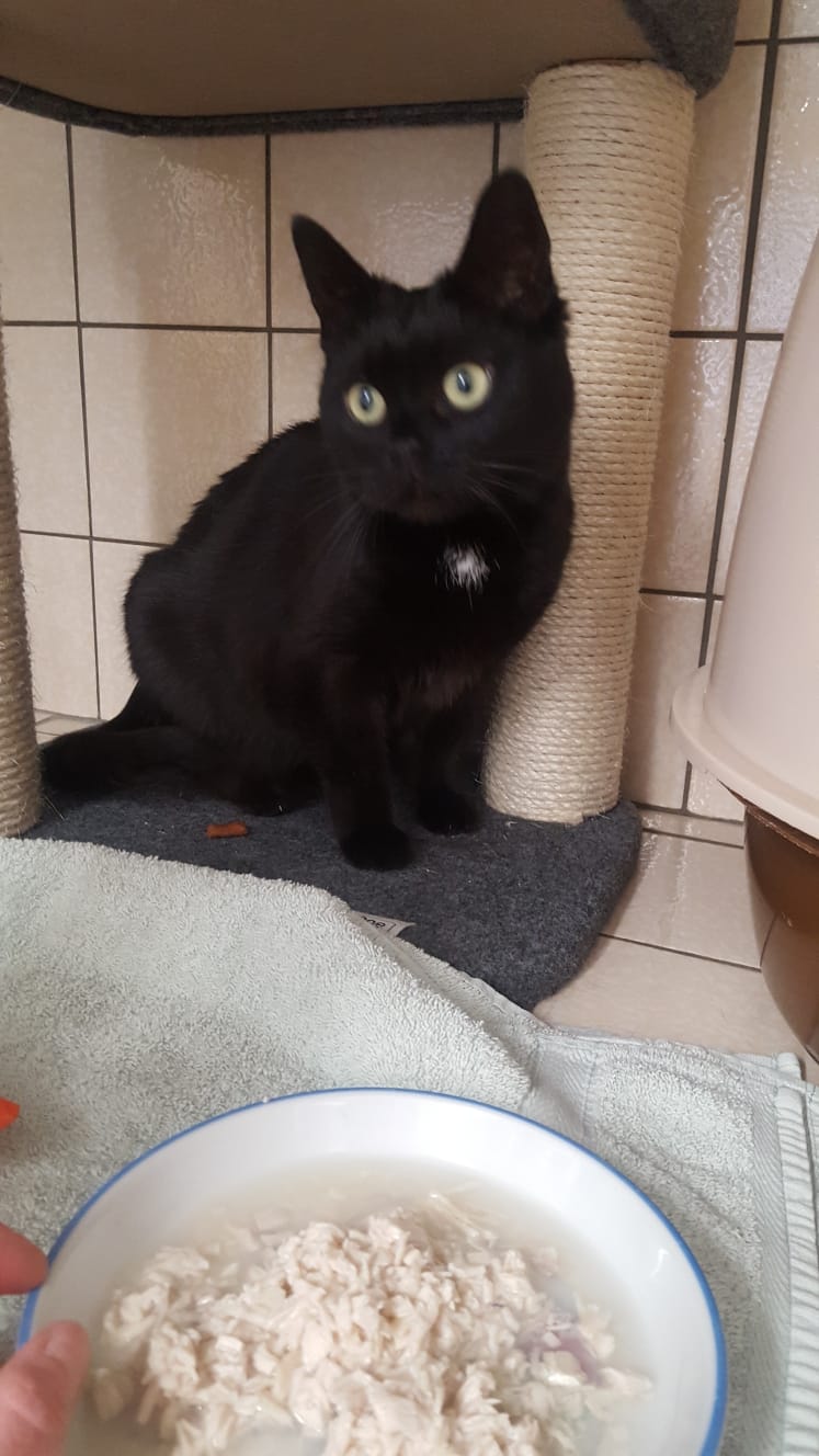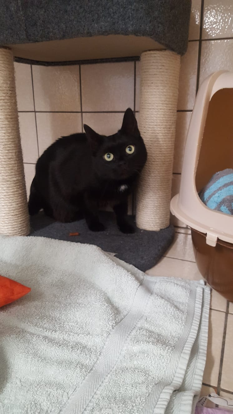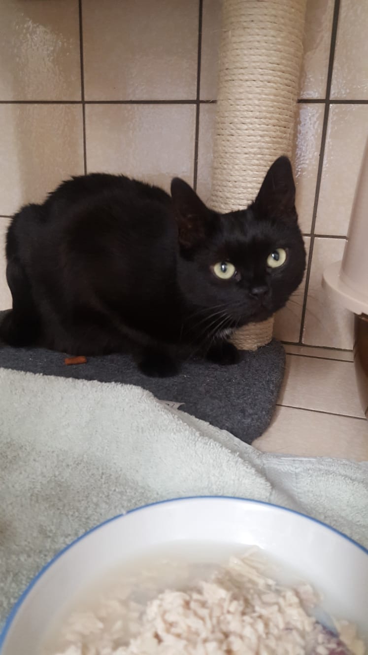 Katzendame Blacky wurde zusammen mit ihrer Freundin Püppi zu uns gebracht. Ihr Eigentümer konnte die beiden krankheitsbedingt nicht mehr versorgen. Während Blacky alles noch als sehr unwürdig ansieht, nimmt Püppi schon zögerlichen Kontakt mit uns auf. Blacky benötigt auf jeden Fall noch eine Zahnbehandlung und beide müssen noch auf eine vorhandene Kastration hin untersucht werden. Daher befinden sich die beiden noch in der Quarantäne. Anschließend suchen Blacky und Püppi gemeinsam ein ruhiges neues Zuhause, das auch einen gesicherten Balkon beinhaltet.