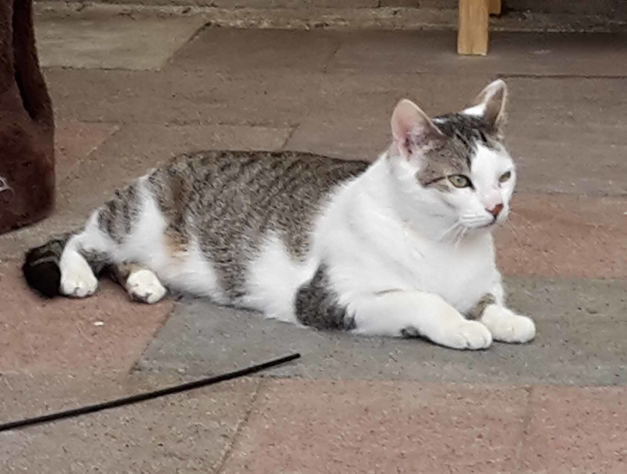 | Farbe/Felllänge: | getigert mit weiß |