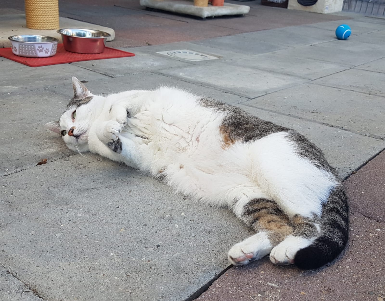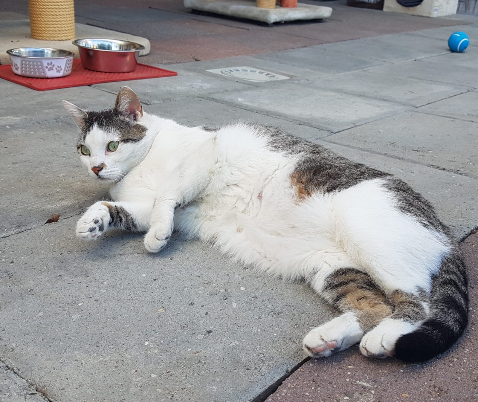 Bei uns im Tierheim scheint ihr die situationsbedingte Distanz / Ungestörtheit Sicherheit zu geben. Sie streicht uns um die Beine, genießt kurze Streicheleinheiten und geht allem, was sie nicht möchte entspannt und souverän aus dem Weg.