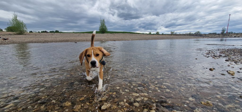 Ein besonders tolles Spiel finde ich ab ins Wasser und dann in den Sand gehen und wälzen. Panierter Beagle nennt Mama das immer. Mal gucken wenn wir am Meer sind soll das auch gut klappen.