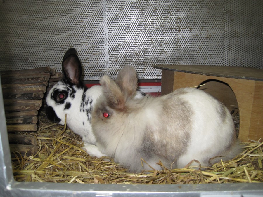 Daisy wurde zusammen mit Snoopy abgegeben. Sie leben bereits seit 3 Jahren glücklich miteinander und so soll es auch bleiben. Daisy baut gerne1-2 mal im Jahr ein Nest, ohne dabei scheinschwanger zu sein. Sie freut sich, wenn man es ihr ein wenig lässt. Gefällt ihr mal etwas nicht, wird kräftig gemotzt. Daisy hat eine Heuallergie, was sie hin und wieder niesen lässt, sie jedoch nicht davon abhalten lässt, genüßlich das Heu zu verputzen. Weitere Infos, auch zu artgerechter Haltung und Versorgung erhalten Sie zu den Öffnungszeiten von unseren Tierpflegern. Daisy und Snoopy werden nur zusammen vermittelt.