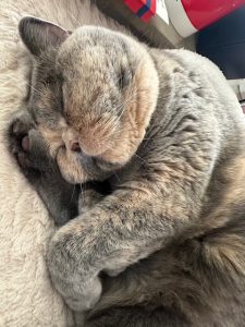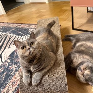 Beiden geht es super und sie „regieren“ hier im Haus mit flauschiger Pfote. Besonders Ebby, die sich nachts um drei lautstark beschwert, wenn die Kissen auf „ihrer“ Bettseite nicht so liegen, wie sie es sollten. Und ja, Ebby schläft im Bett – wer hätte das mal gedacht…