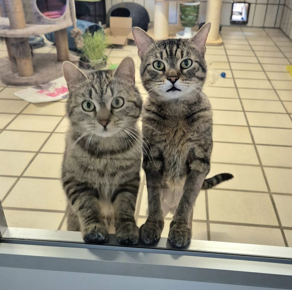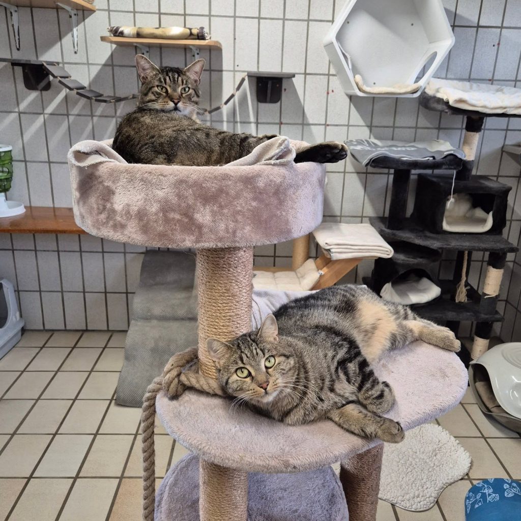 Nach der Quarantänezeit kamen die auf drei und vier Jahre geschätzten Kater in ein Katzenzimmer, lernten sich dort kennen und seit dem passt kein Blatt zwischen die Bros.
