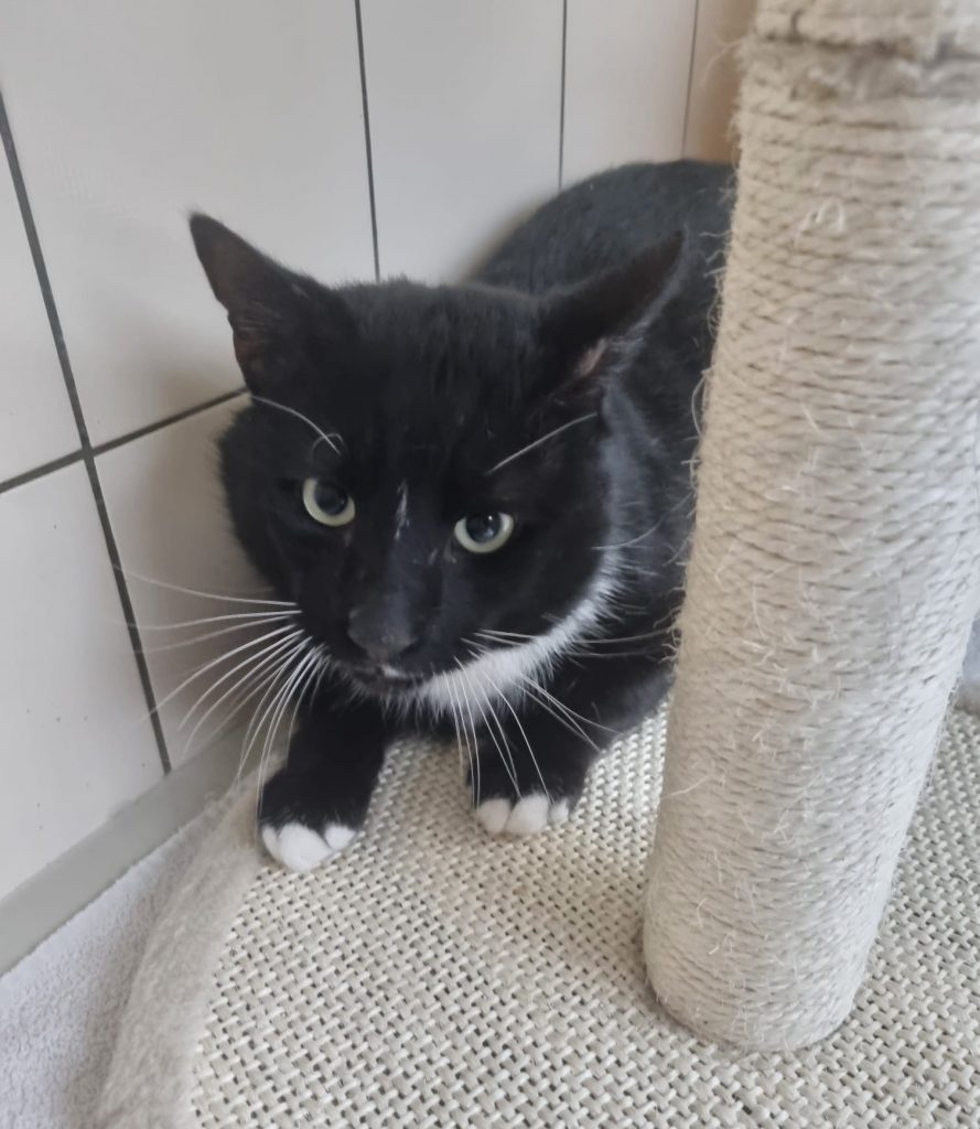 Der auf gut 2,5 Jahre geschätzte Ares wurde inzwischen kastriert, geimpft und gechipt und konnte ins Katzenhaus umziehen.