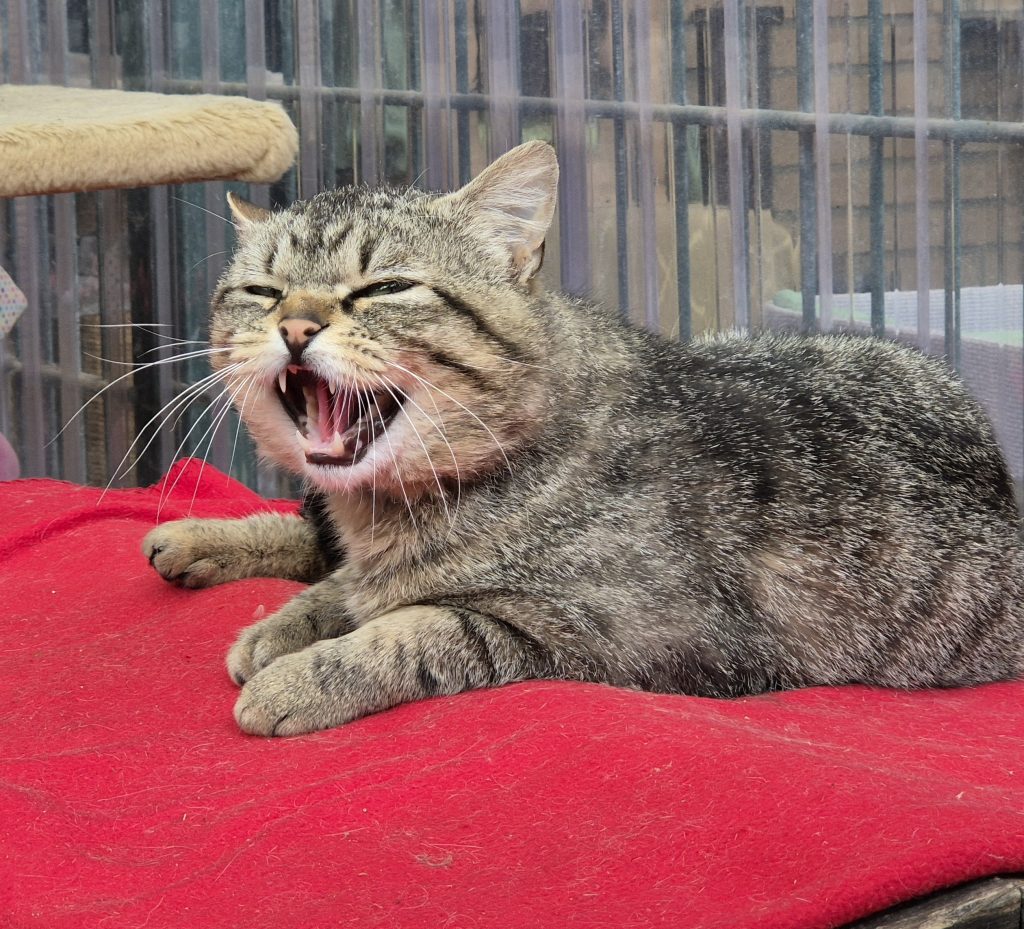 Im Katzenhaus zeigt sich, dass der auf ca. zwei Jahre geschätzte Kimey keinen Wert auf die Gesellschaft von Artgenossen legt. Obwohl seine WG-Bewohner ihn freundlich willkommen geheißen haben und gerne näher kennenlernen würden, lehnt Kimey den Kontakt sehr unmissverständlich ab … er ist einfach ein lonesome Cowboy.