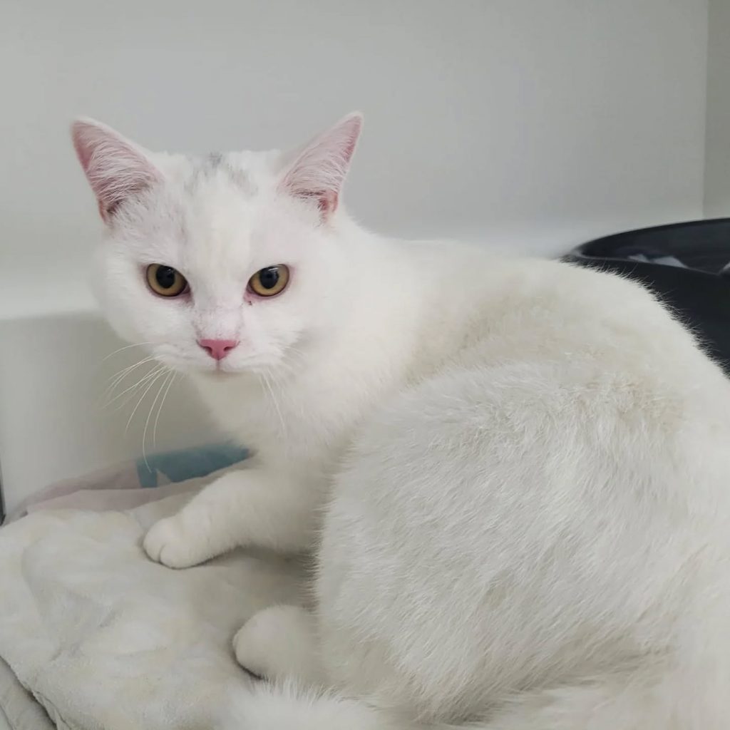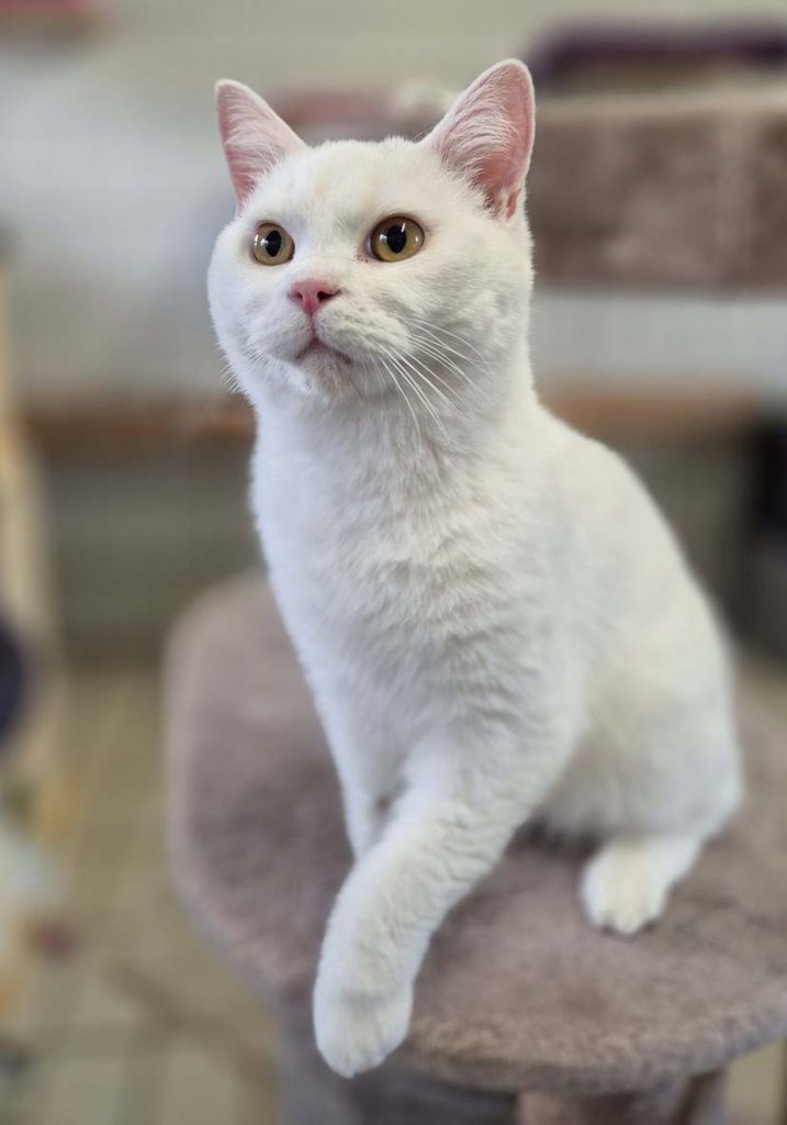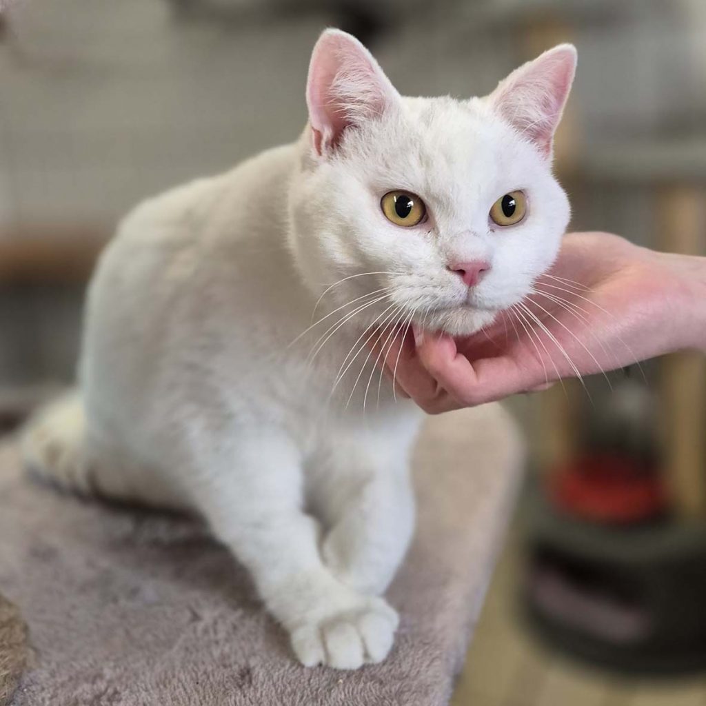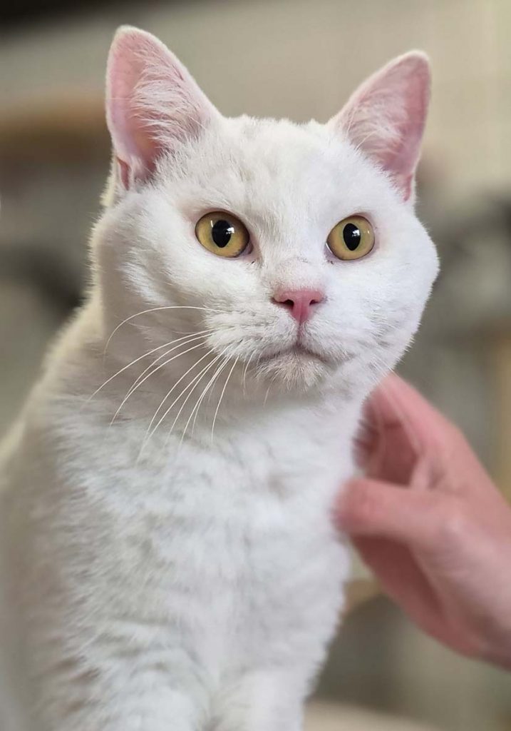 Der hübsche weiße, auf gute drei Jahre geschätzte Kater ist ausgesprochen menschenbezogen und verschmust. Im Umgang mit Artgenossen entscheidet er nach Sympathie. Wir können uns vorstellen, dass er gut mit einem Artgenossen zusammenleben kann, wenn es vom Charakter und Temperament harmoniert.