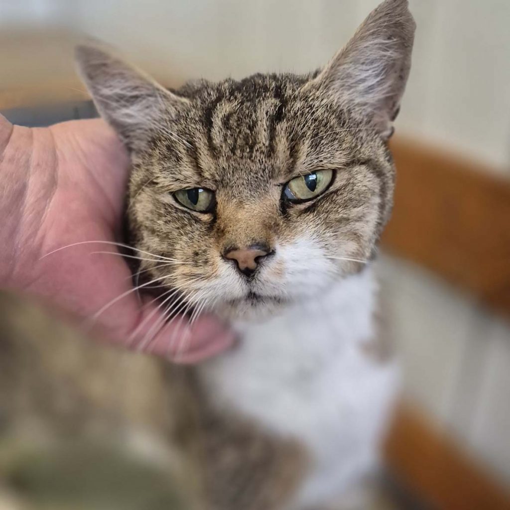Ein genaues Alter haben wir für den Fundkater nicht, aber es ist offensichtlich, dass er im fortgeschrittenen Alter ist. Das mag auch ein Grund sein, dass Leandro etwas mehr Pflege braucht. Auch wenn er dafür nicht im strengen Sinne dankbar ist, muss er bei der Fellpflege unterstützt werden. Dass er für “etwas mehr auf den Rippen” das ein oder andere Leckerchen bekommen sollte, entspricht da schon mehr seinen Vorstellungen.