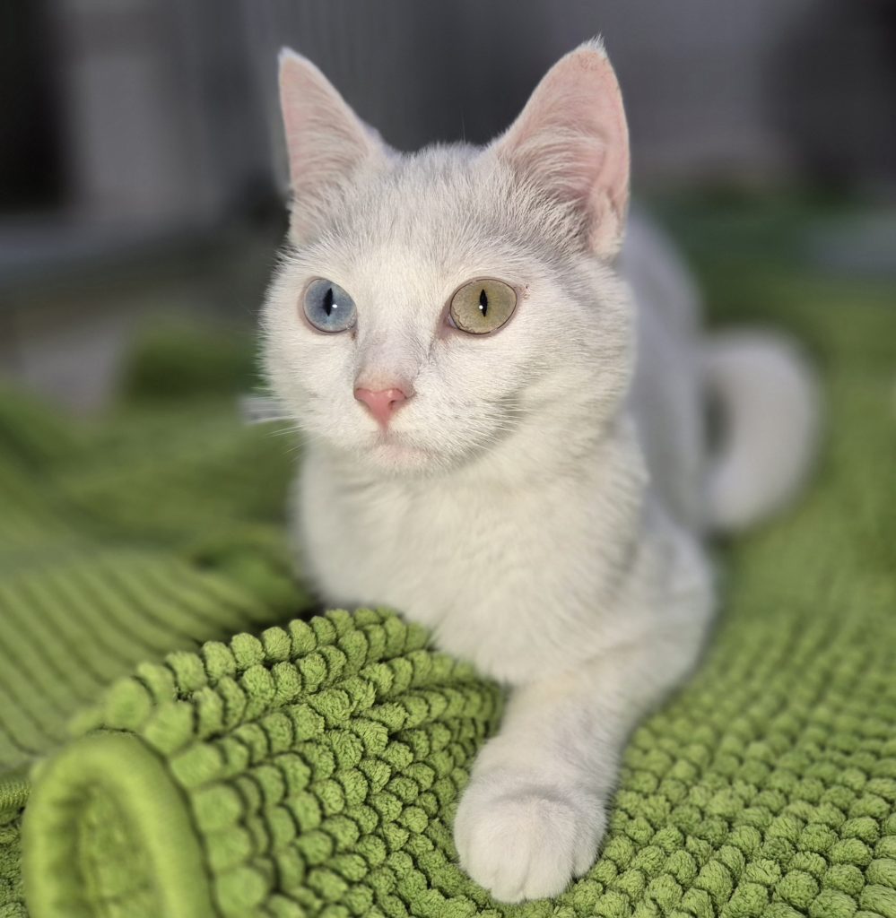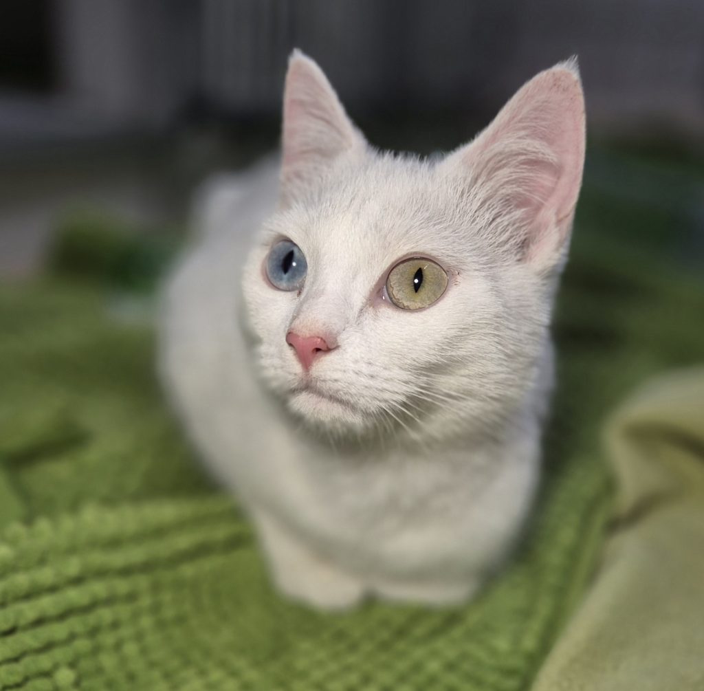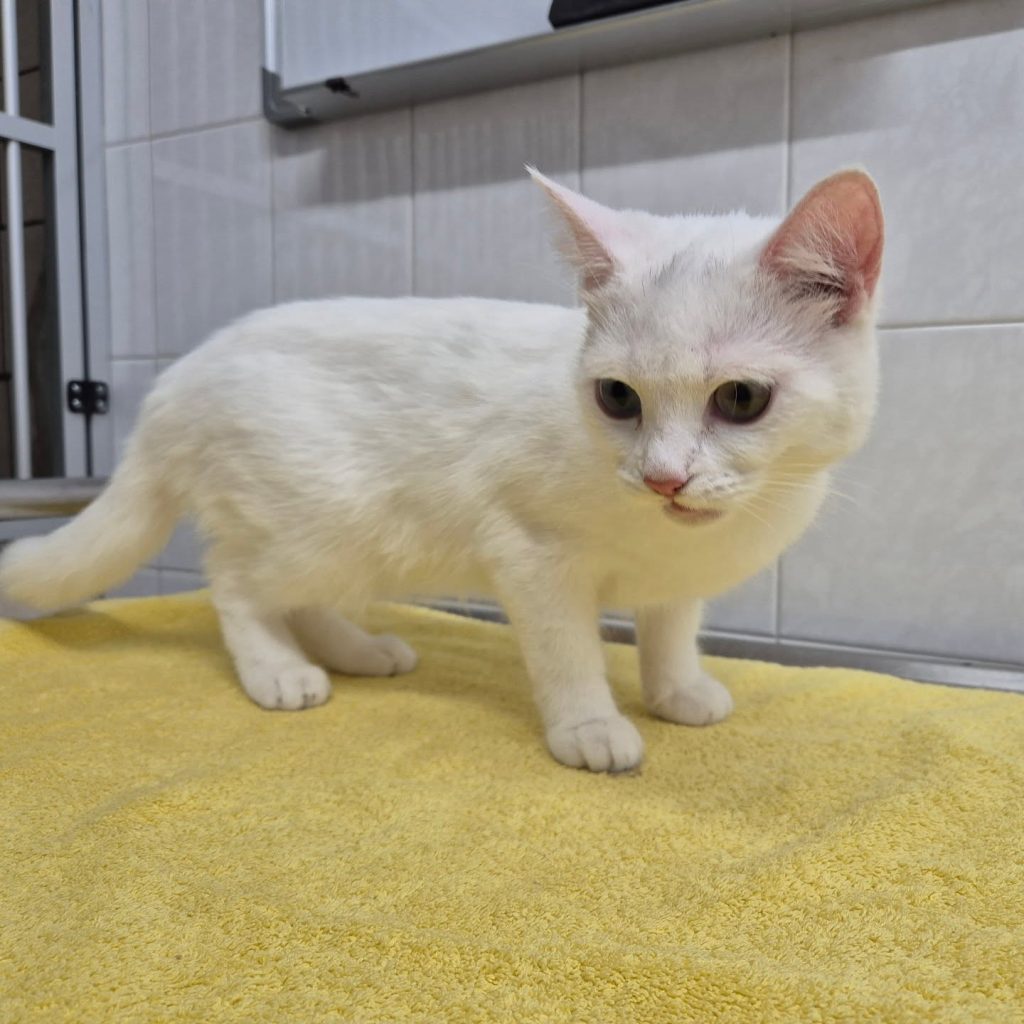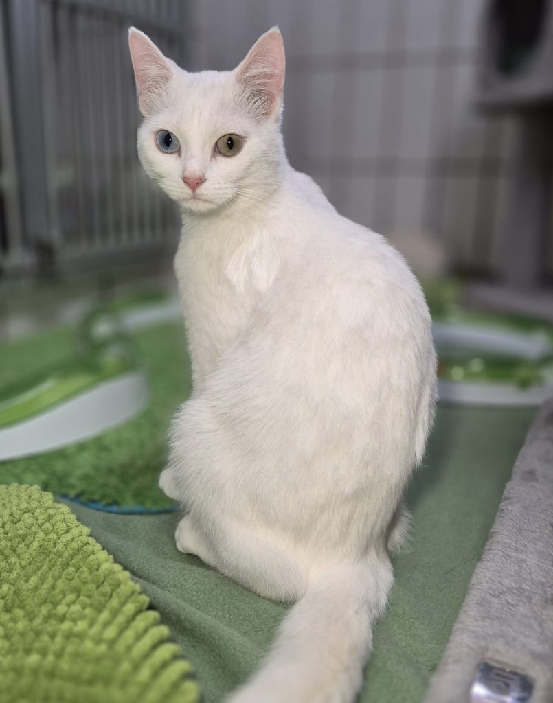 Suki wurde inzwischen kastriert, geimpft und gechipt und konnte ins Katzenhaus umziehen. Hier bestätigten sich die Beobachtungen aus der Quarantäne-Station, dass Suki taub ist.
