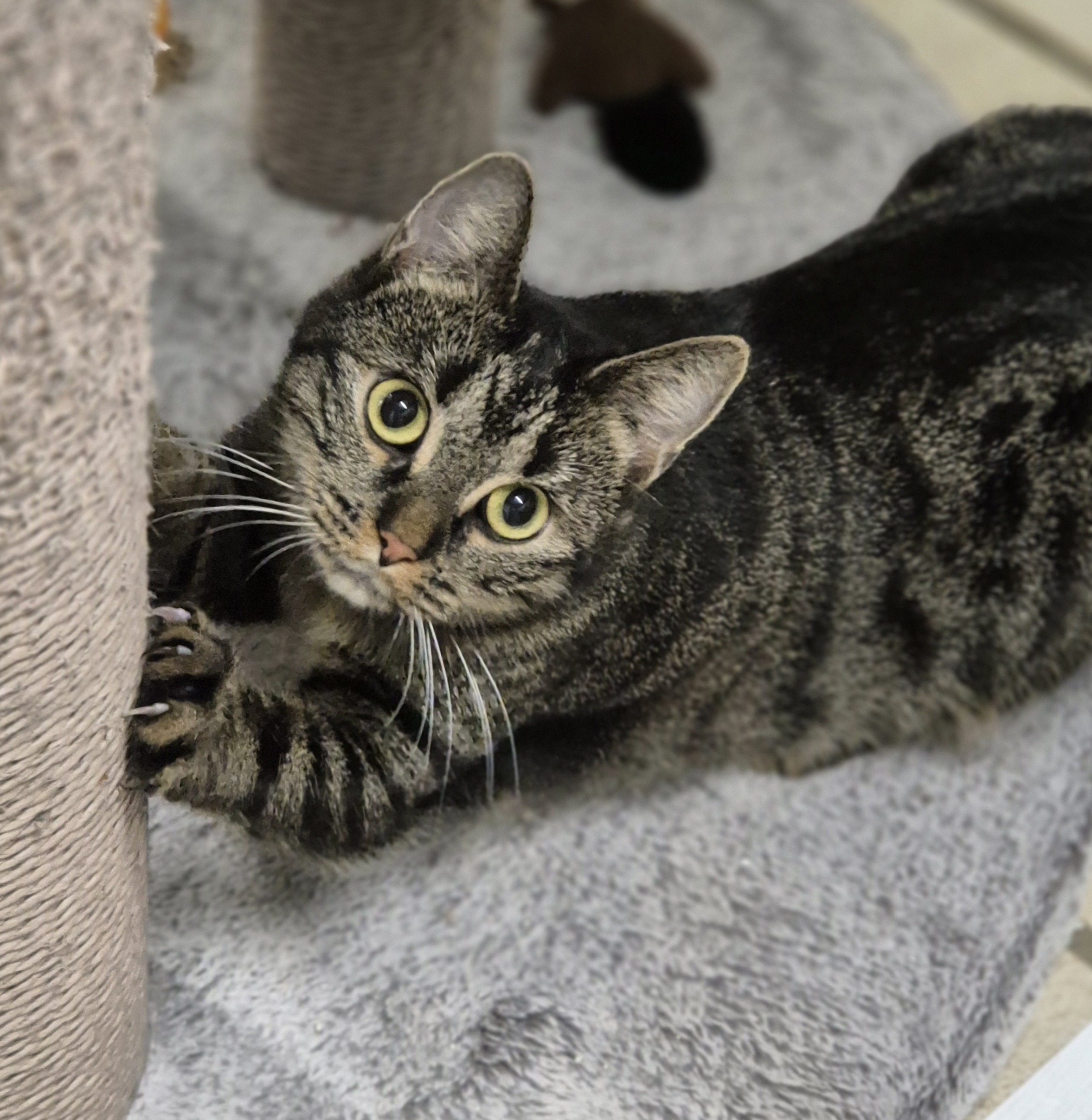 Nach Beendigung der Elternzeit wurde Romy kastriert und ist inzwischen ins Katzenhaus umgezogen. Hier genießt die ca. 1,5jährige junge Katze den neuen Lebensabschnitt.