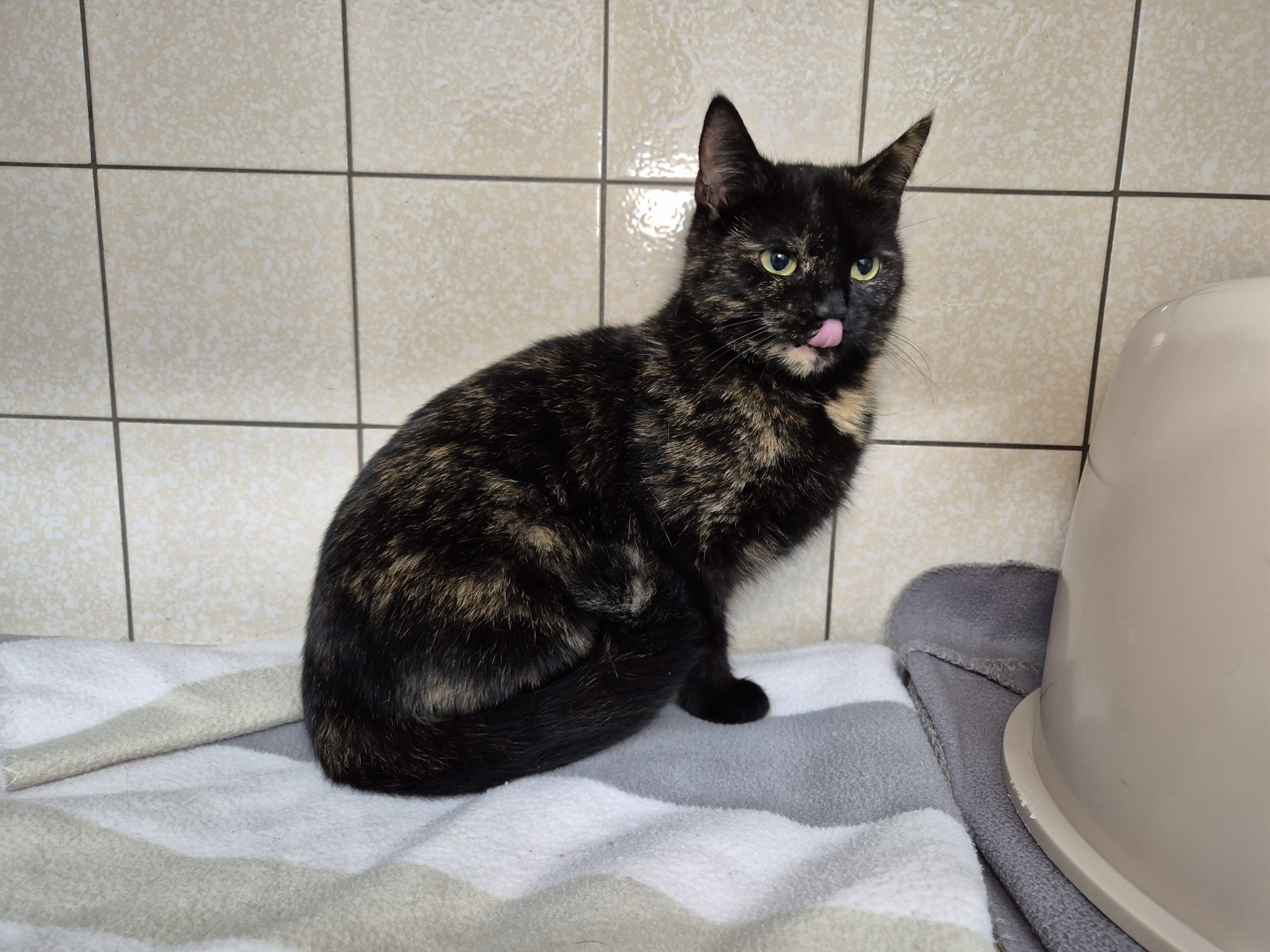 Fundkatze Grete wurde inzwischen kastriert, geimpft und gechipt und konnte ins Katzenhaus umziehen.