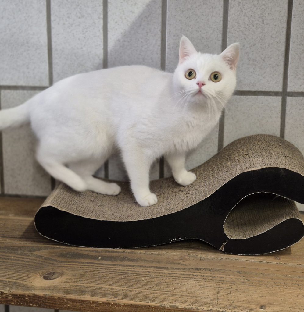 Wölkchen wurde zwischenzeitlich kastriert, geimpft und gechipt und konnte ins Katzenhaus umziehen. Hier zeigt sie sich durchaus verträglich mit den anderen Katzen, aber im Allgemeinen etwas nervös. Vielleicht muss sie sich einfach noch mehr an die neue Umgebung gewöhnen.