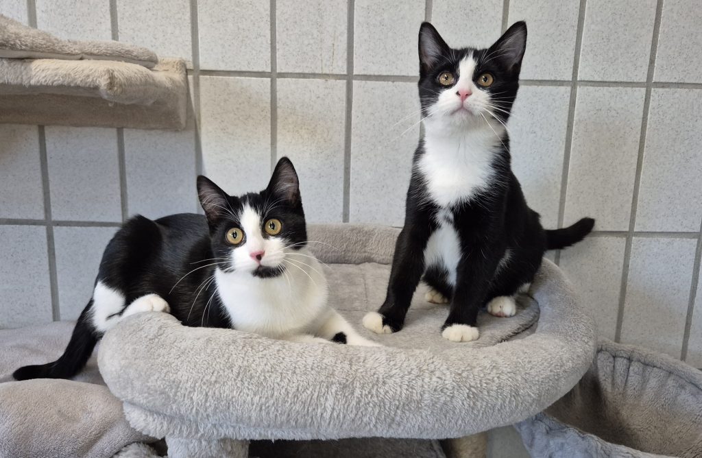 Die beiden sind typische Jungkatzen: verspielt, verschmust – wenn müde und jede Menge Flausen im Kopf. Wer gerade überlegt, seine Wohnung umzudekorieren, wird in Marlow und Gradie motivierte Helfer finden.
