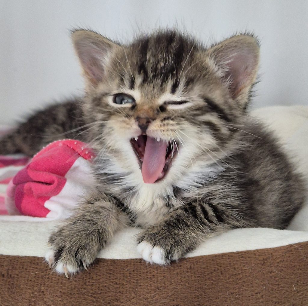 Greta kam mit Mama Frieda und ihren drei Geschwistern zu uns ins Tierheim. Inzwischen ist sie geimpft und gechipt und bereit auf eigenen Pfoten zu stehen.