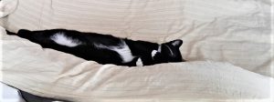 Ausruhen nach dem Freigang. Erschöpft und zufrieden. Innerhalb von 2 Tagen haben sie sich an die Katzenklappe gewöhnt.