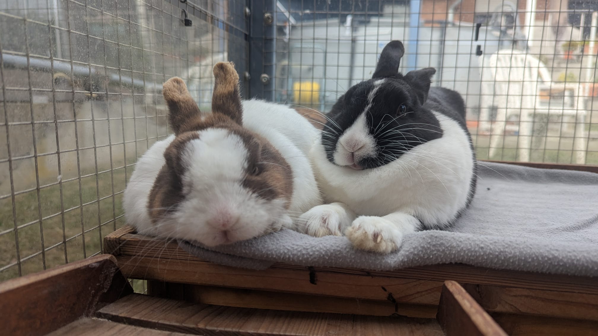 Inzwischen hat sich mein Leben komplett gewandelt. Heute lebe ich glücklich mit meiner Kaninchendame Polly zusammen. Wir genießen täglich viel Auslauf, toben durch unseren Garten, Gehege und Gartenhaus, kuscheln ausgiebig und werden von unseren neuen Tiereltern liebevoll umsorgt. Mir geht es richtig gut – und genau das habe ich auch euch zu verdanken.