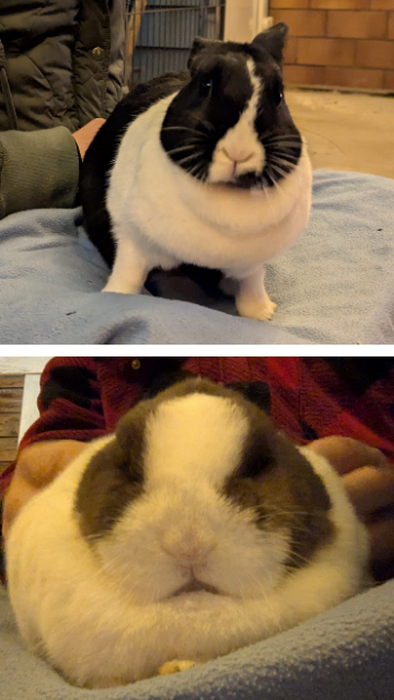 Leider ist vor ein paar Wochen meine liebe Freundin Flöckchen (grau-weißer Zwergwidder) verstorben – sie war aber auch schon älter und seit einer Weile krank. Seit einem Monat habe ich nun eine neue Freundin, nämlich Polly, die aus dem Tierheim in Gelsenkirchen kommt und ungefähr so alt ist wie ich. Wir verstehen und prima und auch Polly hat sich in den ihren ersten paar Wochen bereits sehr gut bei uns eingelebt. Allerdings müssen unsere Menschen nun immer ein wenig aufpassen, vor allem abends im Dunkeln, da wir mit unserem braun-weißen (Klößchen) bzw. schwarz-weißen Fell (Polly) ziemlich ähnlich sind. Hier bei uns sind wir nun nur noch „die zwei Pandas“.
