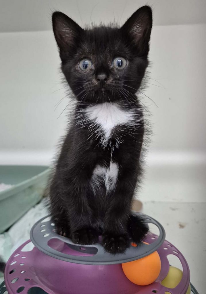 Krümel kam mit Mama Frieda und ihren drei Geschwistern zu uns ins Tierheim. Inzwischen ist sie geimpft und gechipt und bereit auf eigenen Pfoten zu stehen.
