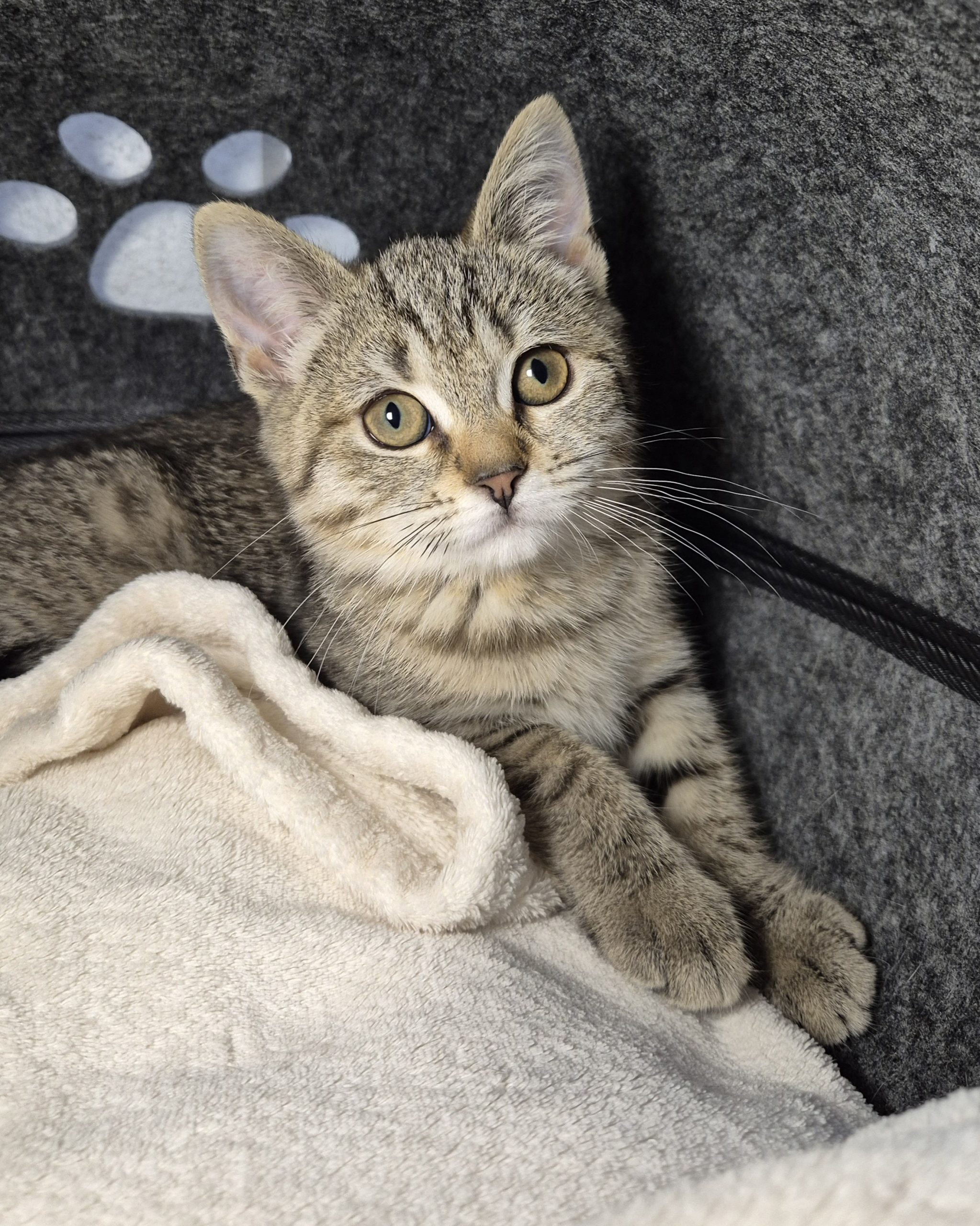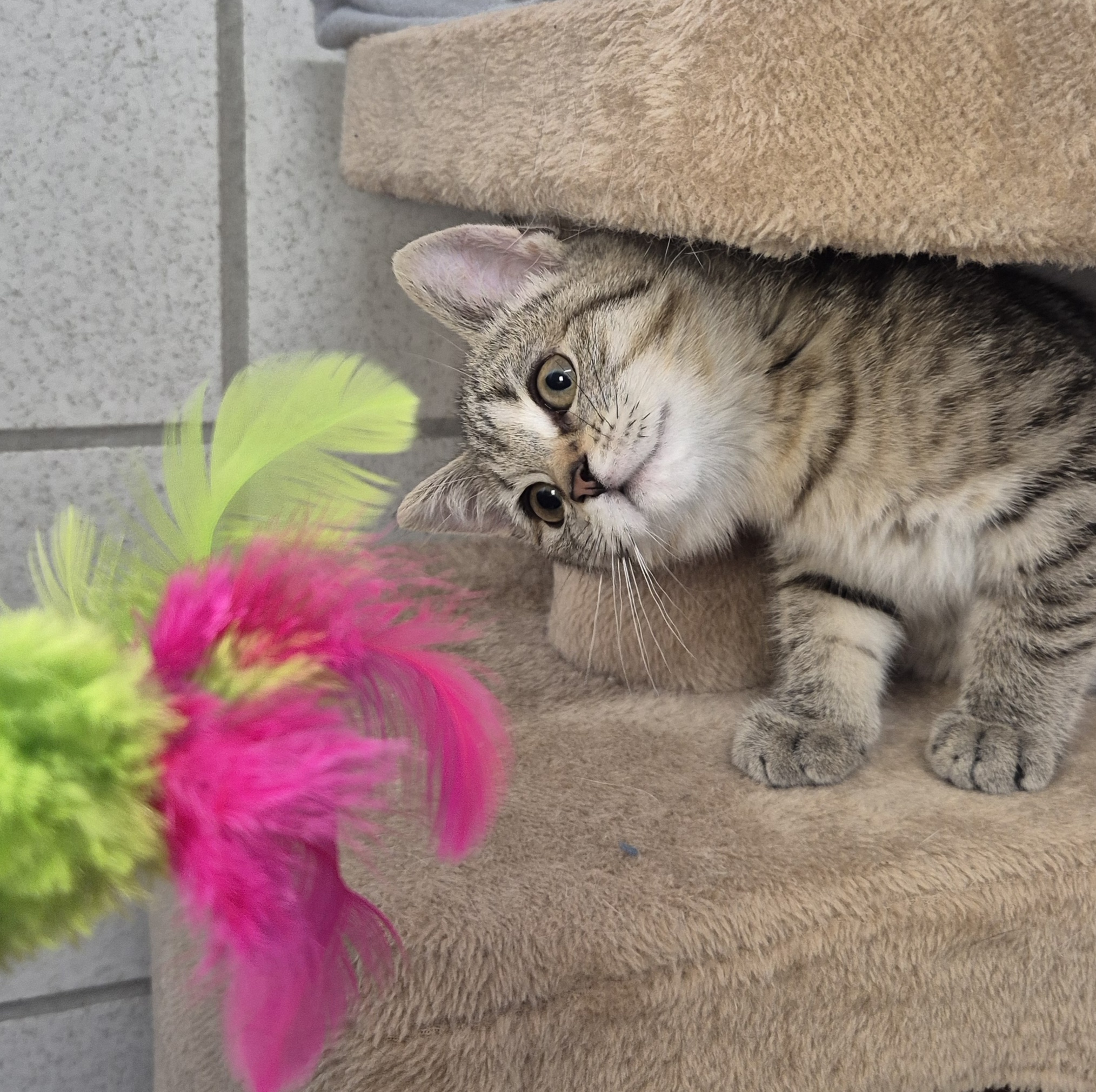 Die drei Monate alte Lolo ist alterstypisch verspielt und hat jede Menge Flausen im Kopf. Da wir aktuell keine anderen Kitten haben, wir Kitten jedoch nicht in Einzelhaltung vermitteln, muss im neuen Zuhause ein ähnlich alter Kumpel auf Lolo warten.