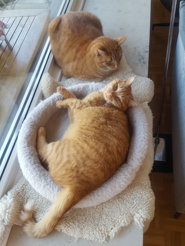 Kater Lumie und Kater Moritz haben sich aneinander gewöhnt.