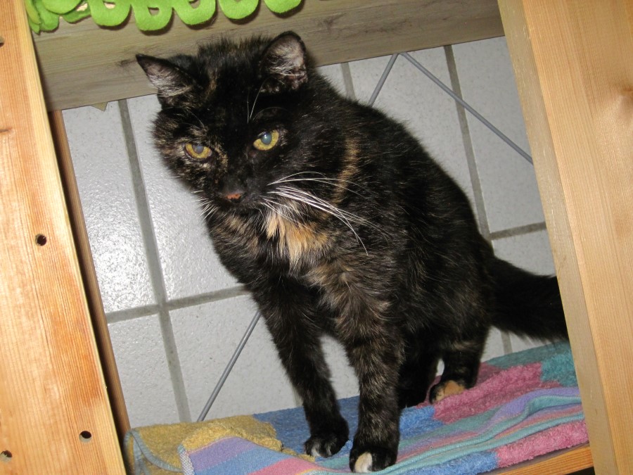 Mimie ist eine eher typische schildpatt Katze: verschmust mit Menschen, aber eher abweisend zu ihres gleichen. Sie krabbelt auf den Schoß und lässt sich gerne verwöhnen. Andere Samtpfoten möchte sie dabei eher nicht in ihrer Nähe haben. Mimie ist Wohnungskatze. Ein gesicherter Balkon ist Voraussetzung für eine Vermittlung.
