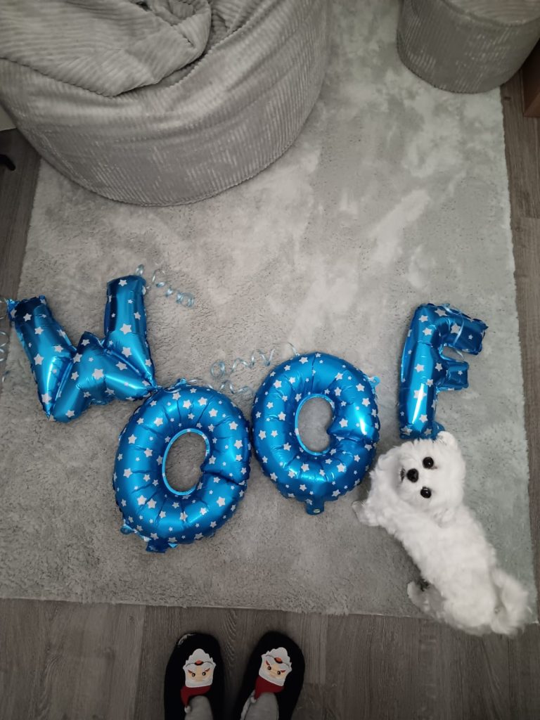 Natürlich haben wir auch gebührend gefeiert, auf Hundeweise mit Spielzeug, Leckerchen, Ballons und couchen 🙂