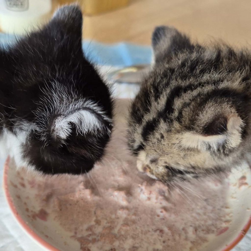 Nito & Kara kamen Ende April im Alter von wenigen Tagen als Fundkitten zu uns. Nach einigen Wochen mit schlaflosen Nächten als Flaschenkitten, sind sie nun bereit für ein eigenes Zuhause.