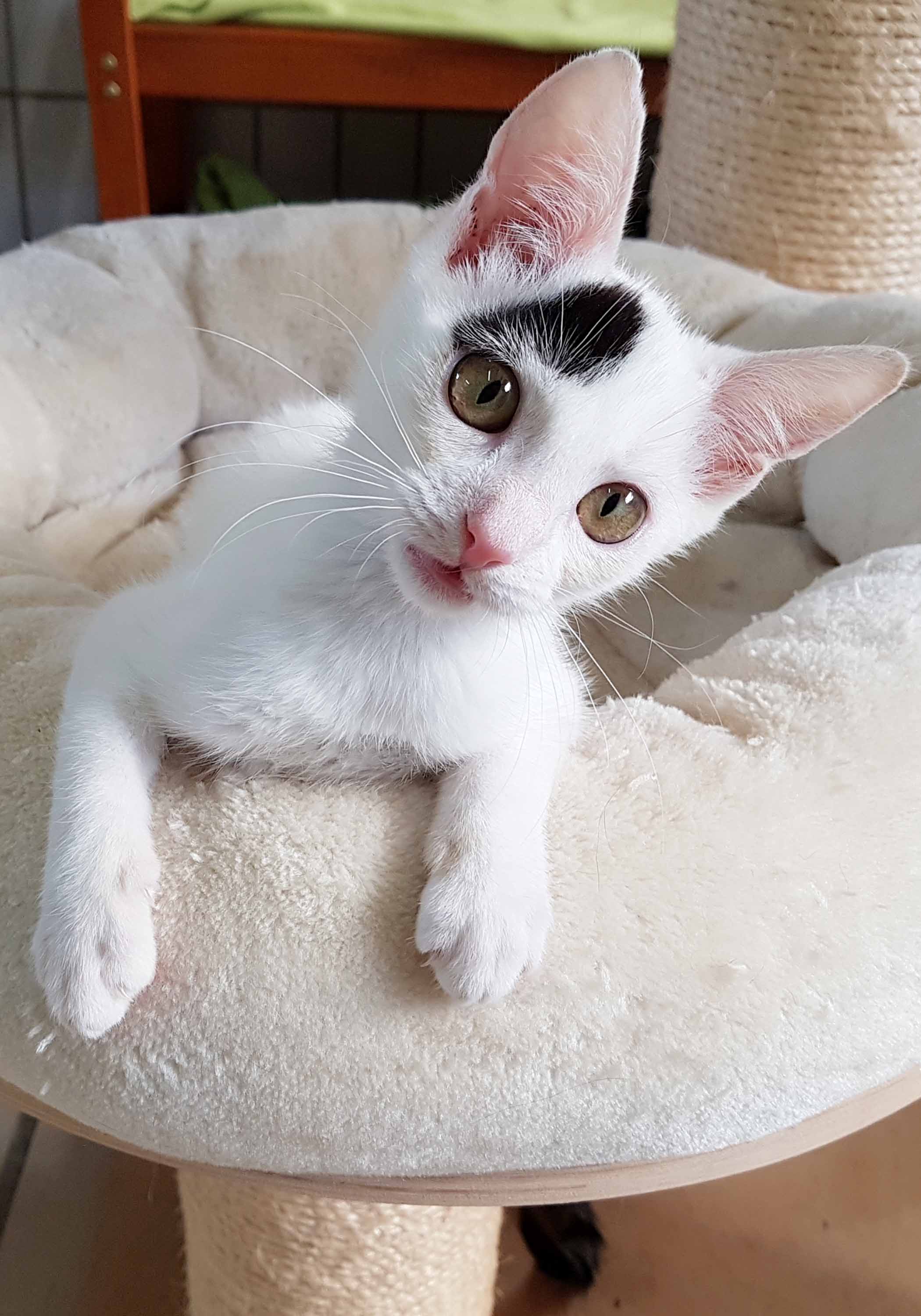 Dieser kleine süße Fratz ist eins von unseren Findelkindern der letzten Tage. Sie wurde bis heute nicht vermisst. Mery, wie wir sie genannt haben, muss momentan noch an den Augen behandelt werden. Das hindert das kleine Energiebündel nicht daran, ausgiebig in ihrer Unterkunft herum zu toben. Ihr Appetit ist gut und sie ist verschmust und freut sich über Zuwendung. Wenn die Behandlung erfolgreich beendet ist, wartet Mery auf einen ähnlich alten Spielepartner im neuen Zuhause. Oder vielleicht findet sich ja auch jemand bei uns im Tierheim, der ihr in Zukunft Gesellschaft leistet.