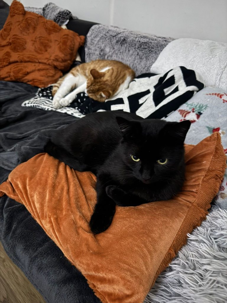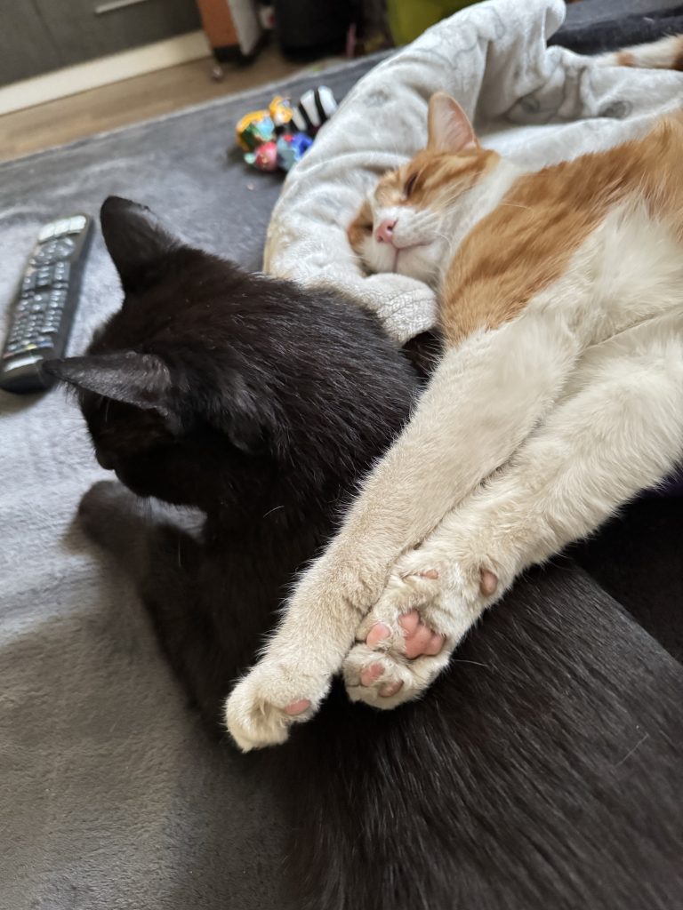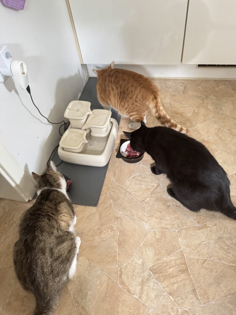 Zwei Wochen ist er nun bei uns und hat sich in Rekordzeit super eingelebt. Auch mit seinen neuen Mitbewohnern verträgt er sich. Anfangs gab es von jedem einen Faucher und damit war dann alles geklärt 😂 anschließend ging es zusammen zum futtern in die Küche.