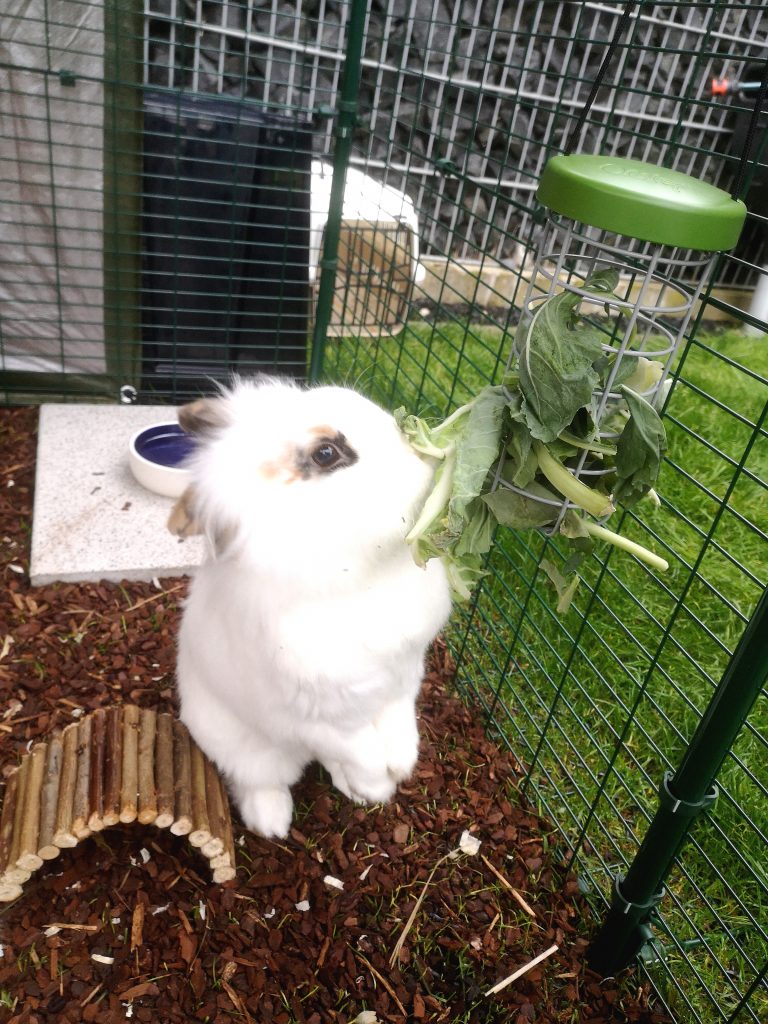 Besonders Pancake liebt es, auch mal die Rasenfläche zu erkunden und springt gerne auf alle Häuschen und über Abgrenzungen der Rasenfläche.