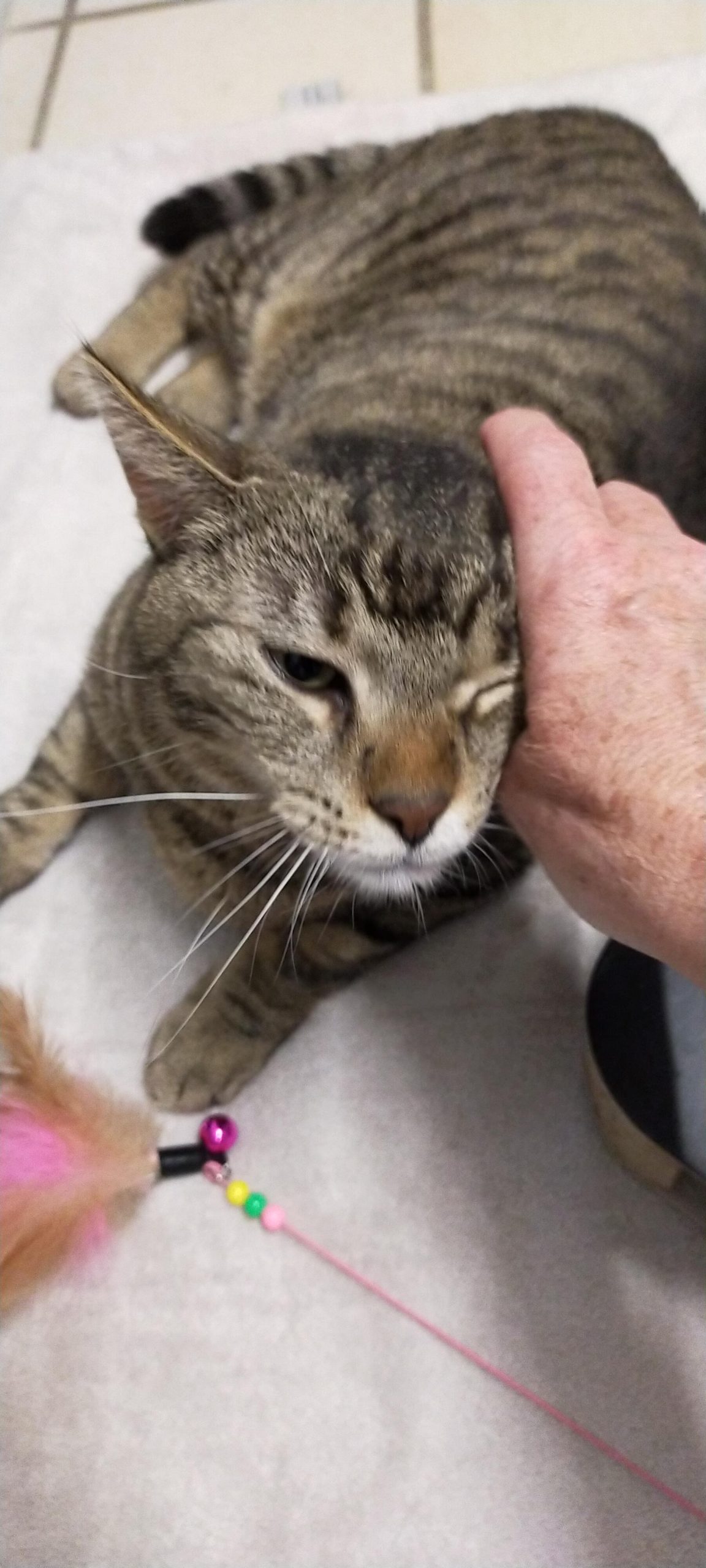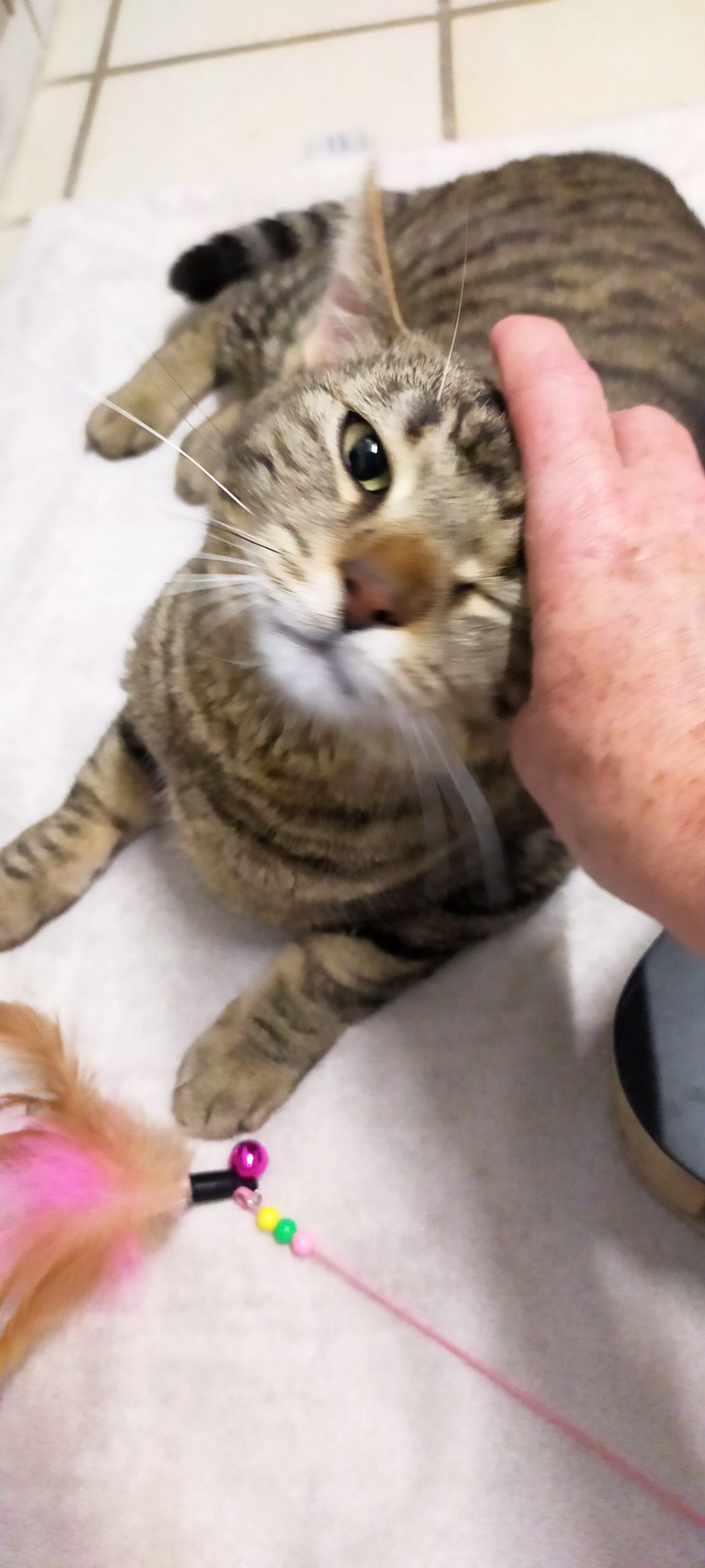 Mittlerweile sind Pippa und Katerchen in einen eigenen Raum umgezogen. Hier genießen sie es, jederzeit von den Mitarbeitern oder den Schmusepaten geschmust und bekuschelt zu werden. Auch kleinen Spielchen sind sie nicht abgeneigt. Besonders Katerchen ist  da schnell dabei.