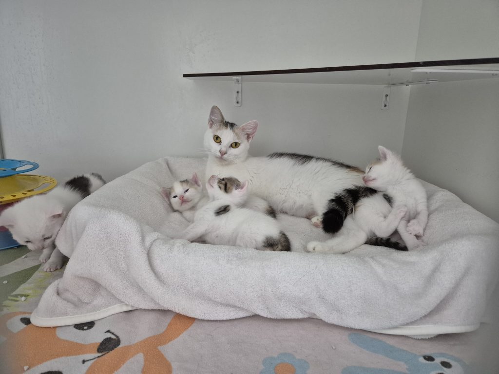 Robyn und ihre drei Geschwister haben Anfang Juli bei uns im Tierheim das Licht der Welt erblickt. Mama Squeezy hat sich gut um ihr Quartett gekümmert, aber jetzt stehen sie langsam auf eigenen Pfoten.