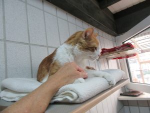 Soni entpuppt sich immer mehr als absoluter Schmusekater. Zurückgezogen auf hohen Liegeplätzen oder im Schrank wartet er auf die Schmusepaten und kann dann nicht genug bekommen. Er rollert sich und genießt die Streicheleinheiten in vollen Zügen. Wie es aussieht, fühlt er sich von den anderen Katzen, einschließlich Felix, eher verfolgt und sucht daher sichere Plätze für seinen Rückzug. Wir haben uns daher enschieden, Soni alleine zu vermitteln. Als Einzelkater kommt er in vollem Zuge dann zu der Zuwendung und Liebe, nach der er anscheinend so sehr trachtet.