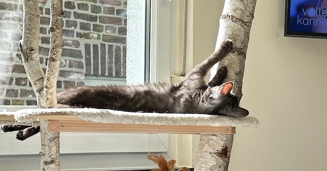 Hallo liebes Team vom Tierheim Moers, Die kleine Stella hat sich nach kurzer Zeit schon sehr gut eingelebt im neuen zu Hause. Sie ist ein quirliger, kleiner Wirbelwind und hat mein Herz im Sturm erobert😻❤️. Ich hab sie schon so lieb gewonnen. Sie hat schon das ganze Haus erkundet ist aber immer natürlich noch etwas zurückhaltend und vorsichtig. Ihr Safe Place ist im Keller unter der Treppe in einer Katzenhöhle. Dorthin zieht sie sich zurück zum schlafen und wenn sie sich verstecken will, weil der komische Staubsauger kommt oder es geklingelt hat an der Tür… den Fernseher findet sie übrigens sehr interessant und aufregend und Spiegel sind auch was ganz merkwürdiges (da denkt sie immer, sie wird von einem Kontrahenten bedroht)… Sie blüht von Tag zu Tag mehr auf und zaubert mir regelmäßig ein Lächeln ins Gesicht. Ich bin sehr dankbar, dass die Kleine bei mir ist und jetzt ein zu Hause für immer hat. Anbei ein paar Impressionen von Stella. Liebe Grüße, Ulla