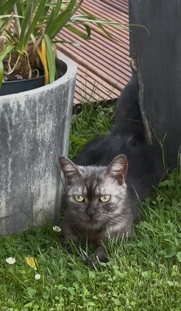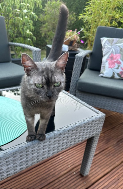 Ich wollte Ihnen noch mal einen Zwischenstand mitteilen, zu der kleinen Stella. Sie ist super glücklich, dass sie jetzt die Welt draußen erobert hat. Das tut ihr unheimlich gut. Sie ist wie ausgewechselt. Der Kontakt mit den vier Nachbars Katzen läuft auch wunderbar.