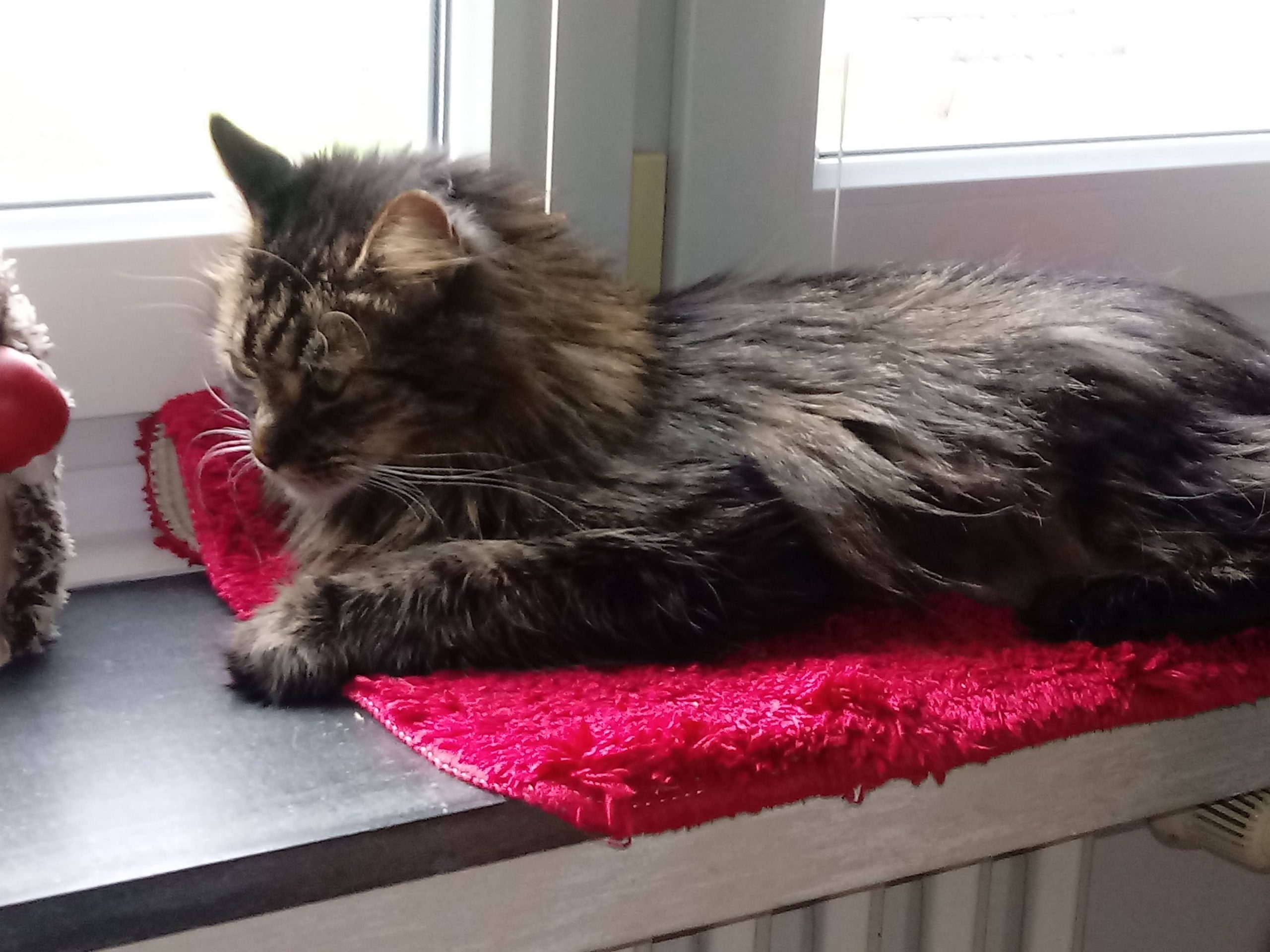 So hat er sich super eingelebt. Er schmust, kuschelt, schläft zwischen uns im Bett und liebt es auf der Fensterbank!!! Schränke mag er auch immer noch!! Er hat eine Lücke entdeckt, wo er in den Kleiderschrank kommt!! Und wenn er mal seine Ruhe haben möchte, klettert er hinein und versteckt sich unter meinen Kleidern!!😂😂