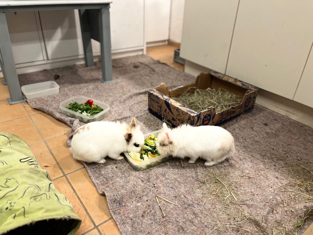 Liebe auf den ersten Blick – es wird gekuschelt, geputzt und gekuschelt (hab ich das schon gesagt?). Nur kurz vor dem Frühstück wird’s mal brummelig – wer zuerst knurrt, frisst zuerst? Keine Ahnung. Aber nach Sekunden ist alles wieder gut und wir mampfen friedlich aus einem Napf. Wie es sich für ein echtes Paar gehört.