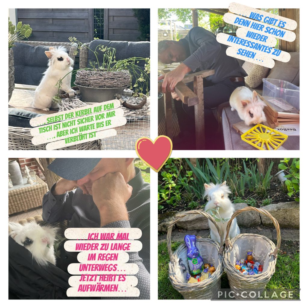 Mit seinem unwiderstehlichen Charme nutzt er jede Gelegenheit, sich ins Haus einzuladen. Dort holt er sich nicht nur seine Streicheleinheiten ab, sondern auch seine Lieblingsleckereien: Petersilie und Petersilienwurzel. Dabei erkundet er die Räume und und er liebt es sich unters Sofa zu quetschen .
