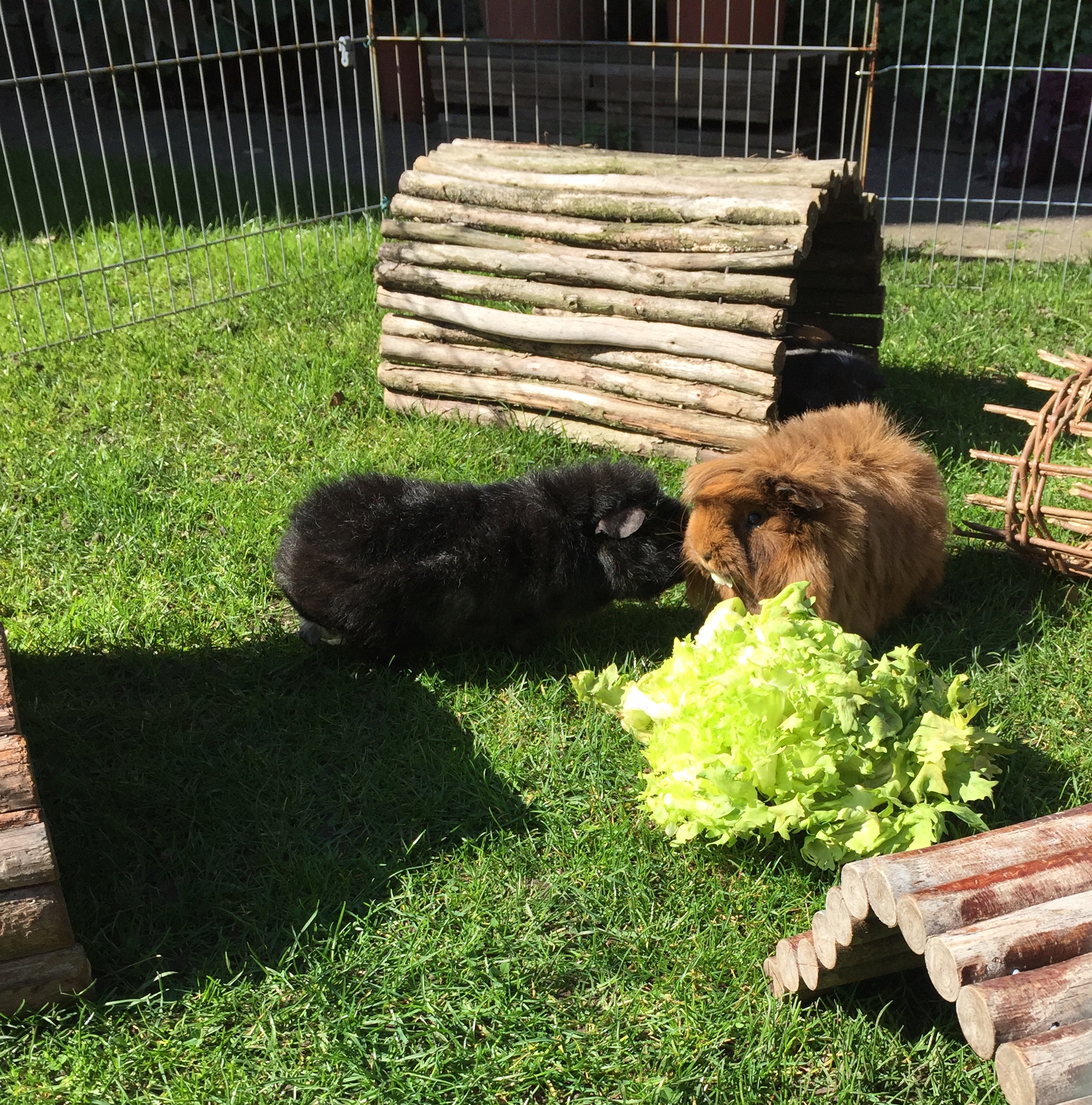 eine Woche wohnt Meerschweinchen Teddy jetzt bei uns und hat sich sehr gut eingelebt. Nach 2 Tagen waren zwischen dem „Macho“ und seinen zwei Witwen die Fronten geklärt. Schüchtern ist er gar nicht mehr und hat ganz schnell unsere Ritualien gelernt und akzeptiert. Unsere Damen haben jetzt keine Langeweile mehr. Eine Win-Win-Situation für alle!