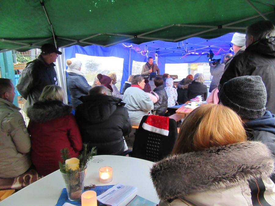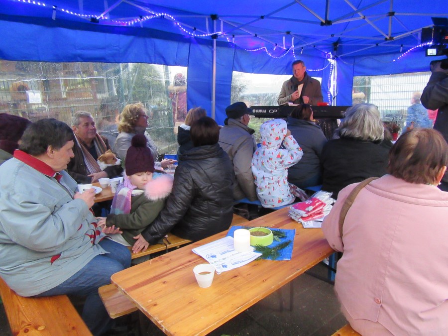 Mit Gesang, besinnlichen und ermutigenden Worten ließ er die Tierfreunde innehalten vom angeregten Treiben. Die Anwesenden lauschten eingemummelt und andächtig dem Geschehen