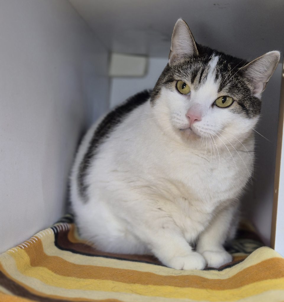 Der (etwas zu) pfundige Kater ist ausgesprochen verschmust. Wenn er erstmal seinen Schnurrmotor anschmeißt wird hörbar, wie sehr er die Zuwendung genießt.