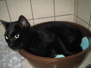 Miauu, aber da hat doch tatsächlich letztens jemand unsere Alma und Devina im Doppelpack adoptiert. Ick freu mir so für die beiden Mädels. Danke! Hoffentlich findet sich nun bald jemand der sich in Manila oder Charleen verliebt. Manila hat liebevoll ihre Mutterpflichten erfüllt, alle Jungs und Mädels fein erzogen, und ist nach der Schwangerschaft wieder top in Form und poliert täglich ihr schwarzes Fell, so dass es wunderschon im Sonnenlicht glänzt. Charleen übertreibt es manchmal mit der Körperpflege. Augenbrauen zupfen genügt ihr nicht, die Haare an den Beinen müssen auch noch weg. Dabei heißt es doch “black is beautifull” und nicht “blank”. An zweifelhaften Amüsements habe die auch kein Interesse mehr, viel lieber würden sie eins der Menschenherzen erobern. – Schauen wir mal…!