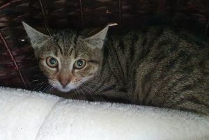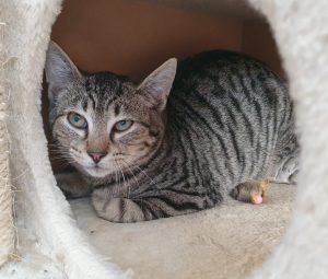 Toto ist ebenfalls einer von unseren noch sehr zurückgezogen lebenden Jungkatzen. Schmusepaten werden sich intensiv mit ihnen beschäftigen, um ihm und seinen Kumpels zu zeigen, dass Menschen auch schöne Sachen machen können, z. B. spielen, Leckerchen verteilen u.a.