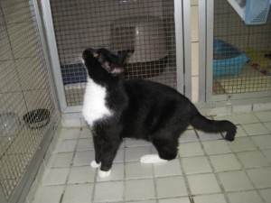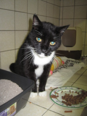 Tommy ist ein sehr stattlicher und schöner Kater. Er ist schwarz mit weißen Pfoten und einem weißen Bäffchen. Die meisste Zeit sitzt er im Moment in seiner Unterkunft und mauzt kläglich vor sich hin.  Er  hat sein Zuhause verloren, weil sein Mensch leider verstorben ist. Er ist etwas unsicher durch die neue Situation im Tierheim. Er möchte schmusen, tut dies auch, traut dem Gegenüber aber noch nicht so ganz und warnt dann.  Er war wohl auch beim Tod seines Menschen anwesend und wir wissen natürlich nicht , was er da erlebt hat. Er hatte im alten Zuhause eine Katzenklappe, so dass er kommen und gehen konnte, wie er wollte.  Im diesem  Zuhause war Tommy ein Fundtier, der zu dem Zeitpunkt im Leben seines Menschen auftauchte, als dort der Ehepartner verstorben war. So entstand dort eine innige Beziehung, basierend auf gegenseitigem Respekt und Liebe. Diesen Menschen hat Tommy nun durch dessen Tod verloren und muss sich nun wieder mit neuen Gegebenheiten arrangieren.  Tommy ist auf jeden Fall Freigänger.