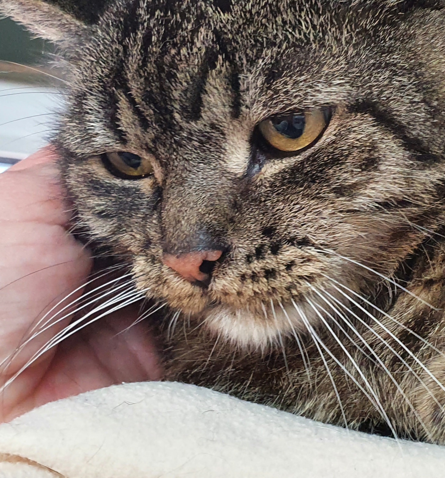 Gestern kam unser süßer, verschmuster Kater Garfield aus der Vermittlung zurück. Leider wurde im neuen Zuhause trotz aller Kenntnis seines Zustandes dieser einfach nicht akzeptiert. Garfield geht es soweit gut. Er liebt Schmuseeinheiten, frisst gerne und genießt ansonsten einfach sein Dasein. Keiner weiss, ob dies alles von Dauer sein wird, aber im hier und jetzt wartet Garfield einfach auf Menschen, die akzeptieren, dass er ein paar Baustellen hat, mit denen er aber gut zurecht kommt. Seine Leberwerte werden mit Kräutern unterstützt alles weitere wird sich zeigen.